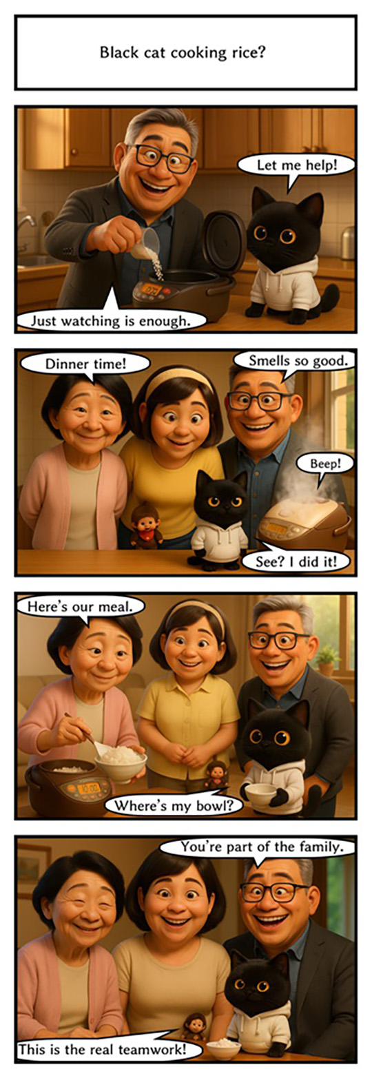 As the soft steam rises, the familiar fragrance of rice fills the house, whispering, “Dinner is almost ready.” When the cooker beeps, my mother often smiles, my sister sometimes peeks into the kitchen, and even our black cat waits nearby, pretending to “help.” These little moments may sound ordinary, but they bring warmth and laughter into our home.